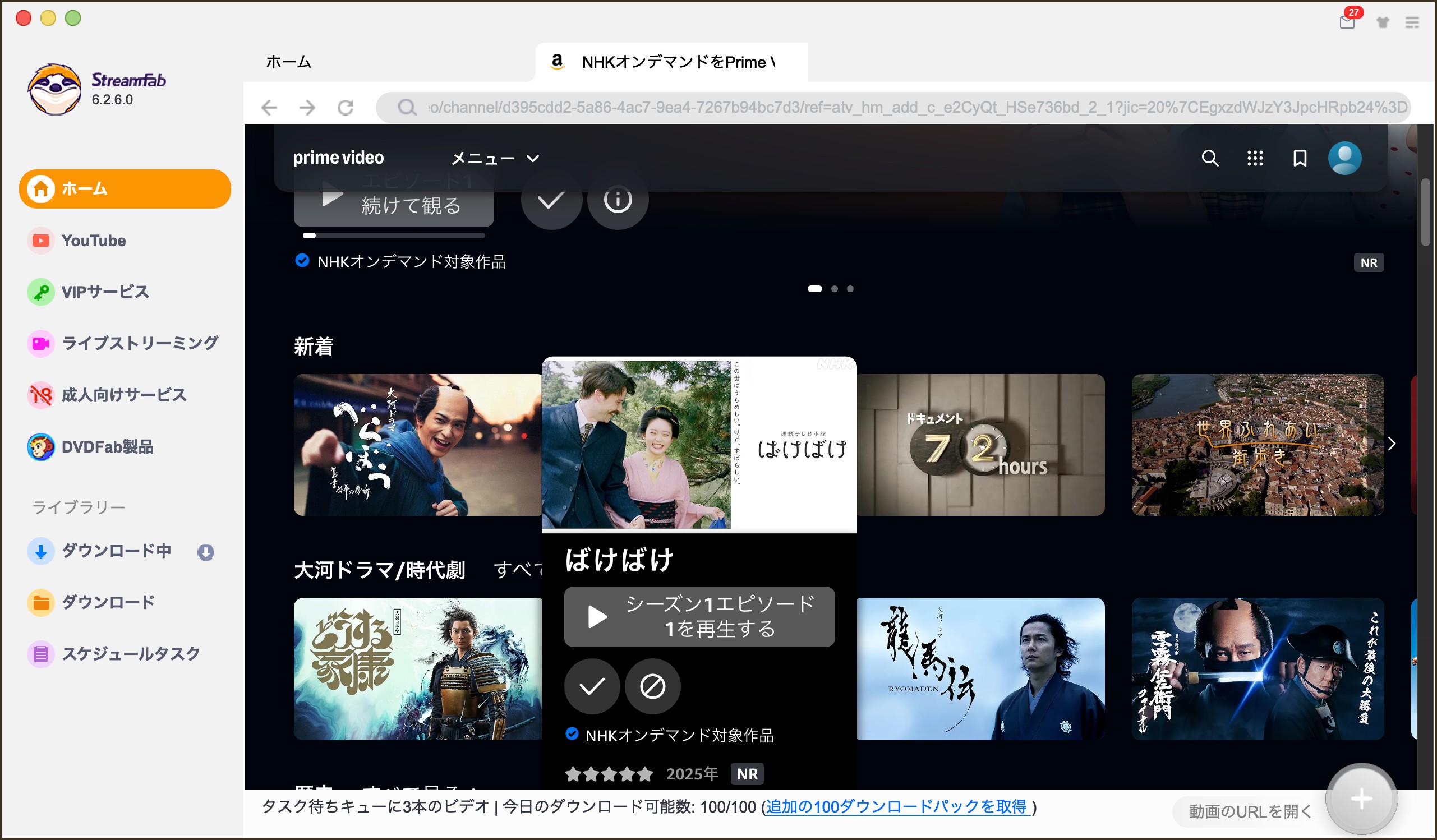 ここでは、実際に StreamFab Amazon ダウンローダー を使って Amazonプライムビデオの動画をPCに保存した際の手順と検証データを紹介します。