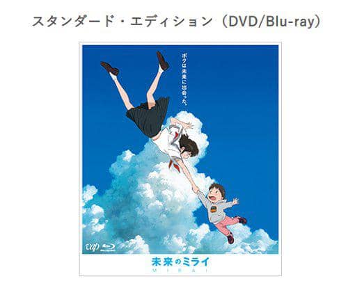 『未来のミライ』スタンダード・エディション(DVD/本編ディスク) 『時をかける少女』、『サマーウォーズ』、『おおかみこどもの雨と雪』、『バケモノの子』、次々に大ヒットアニメーション映画を生み出し、国内外で今もっとも注目される映画監督・細田守は、最新作『未来のミライ』で挑むのは、甘えん坊の男の子“くんちゃん”と未来からやってきた妹“ミライちゃん”が織りなすちょっと変わった「きょうだい」の物語です。 |