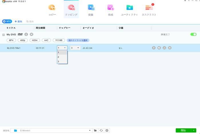 日常系アニメDVDをリッピングするステップ3:出力DVDのタイトル、オーディオトラックや字幕を選択します。