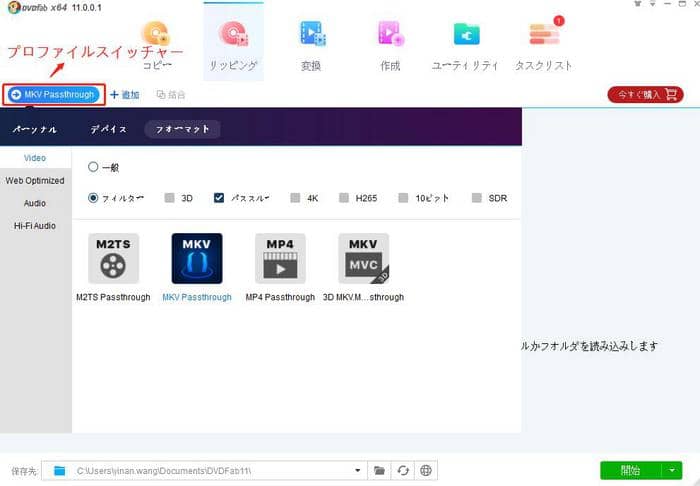 日常系アニメDVDをリッピングするステップ2:左側へプロファイルスイッチャーをクリックして必要なプロファイルを選択します。