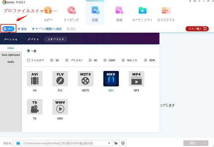fc2 アニメブルーレイをリッピングするステップ2: ソースのロードが完了した後、左上隅のプロファイルスイッチャーをクリックして必要なプロファイルを選択します。