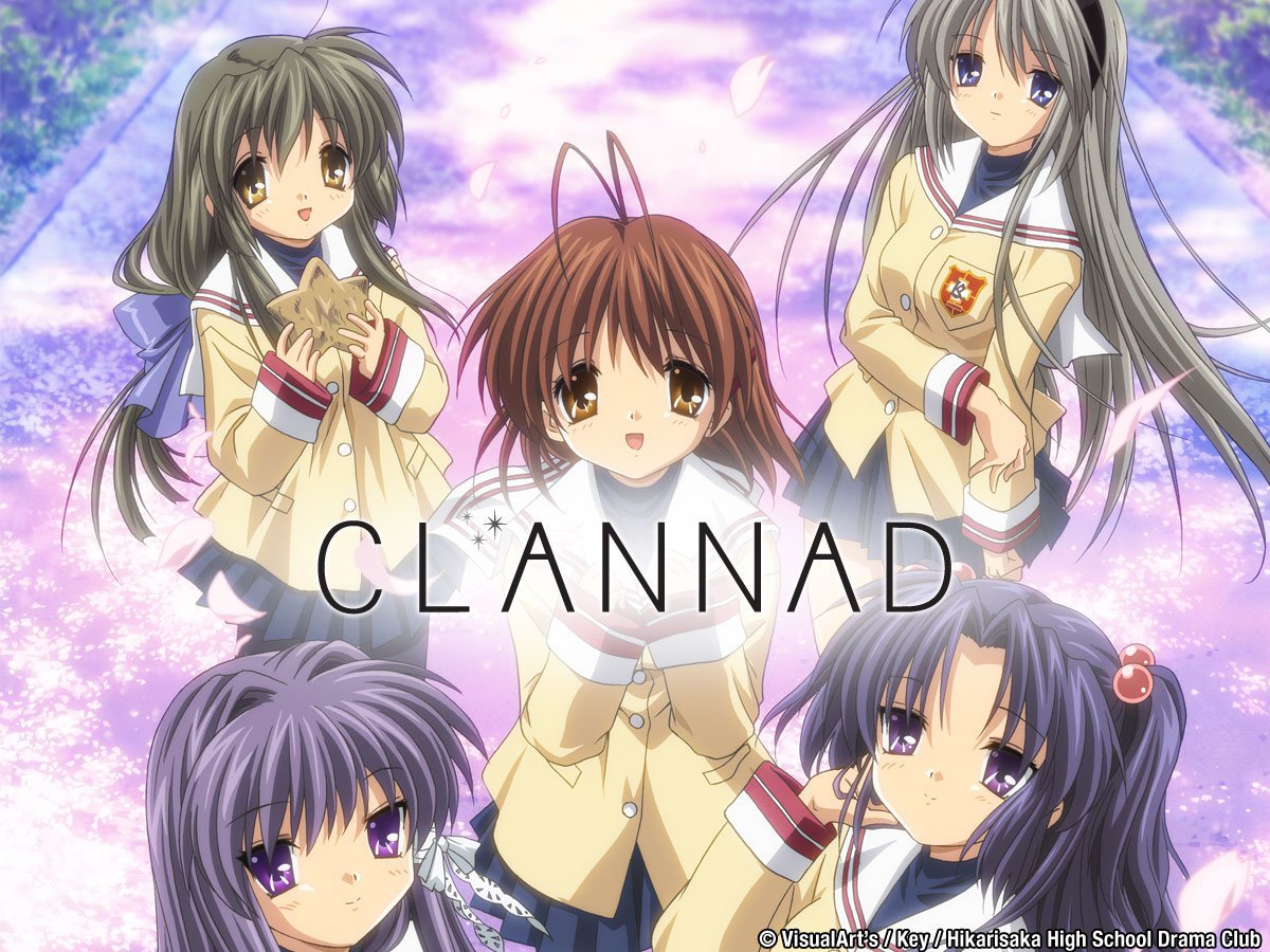 「clannad」は「家族」の意味です。ある町を舞台にして起こる、主人公の岡崎朋也と、主人公が通う学園で出逢うヒロイン達との交流と成長の物語です。怪我でバスケットボールを断念し不良となっていた岡崎朋也は、ある日学園前の坂道で女子生徒の古河渚と出会いました。渚は演劇部の復活を目指しており、朋也や朋也が教師幸村俊夫の働きかけで出会った友人の春原陽平、その他ヒロインらが演劇部の再建に協力していく経緯を軸に、各キャラクターのルートに分岐して物語が進められます。本作は人と人の絆を細かく、そして深く描いていおり、ユーモア要素も加われ、男女にもかかわらず多くの観衆から好評を集め、その代表主題歌「だんご大家族」も非常に有名です。