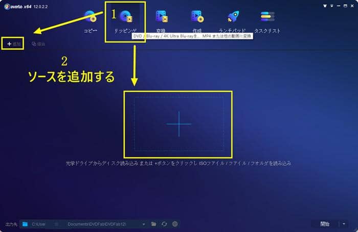 (1)まず最初に、最新版のDVDFabをダウンロードします。インストールされたDVDFabを起動して、「コピー」モジュールに移動します。光学ドライブにコピーしたいBlu-rayディスクを挿入して、またはメイン画面における「+」ボタンをクリックしてソースをロードします。