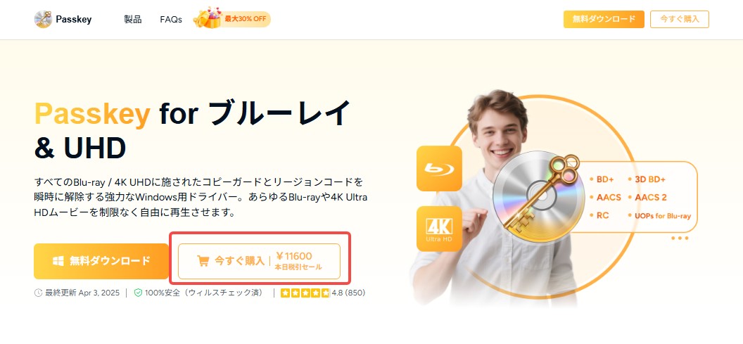 Passkey for ブルーレイ & UHD | Blu-ray / 3D Blu-ray / 4K UHD | AACS、BD+、リージョンコード、BD-Liveなど | コピーガード解除、ISO/フォルダにリッピング、リージョンフリー化 |