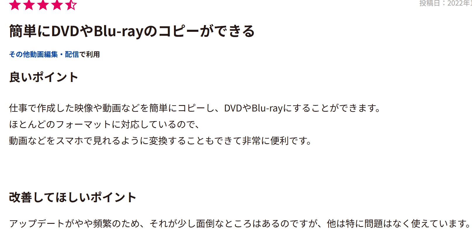 - Trustpilotでの評価は4.7と非常に高く、新発売のブルーレイディスクへの素早い対応、信頼性の高さ、アップデートの頻度、使いやすさなどが高く評価されています。