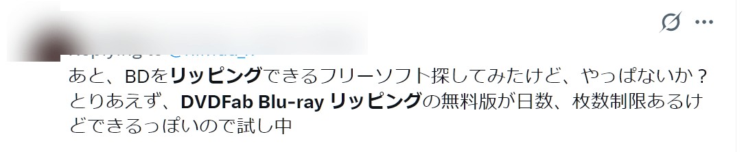 DVDFab Blu-ray レコーダーリッピング(録画BDを動画化)