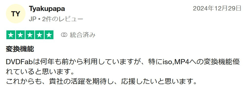 - Trustpilotでの評価は4.7と非常に高く、新発売のブルーレイディスクへの素早い対応、信頼性の高さ、アップデートの頻度、使いやすさなどが高く評価されています。