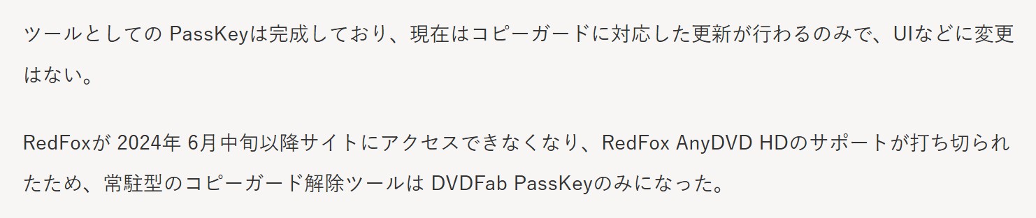 - 最新のコピーガードに対応するため、アップデートの頻度がやや高め