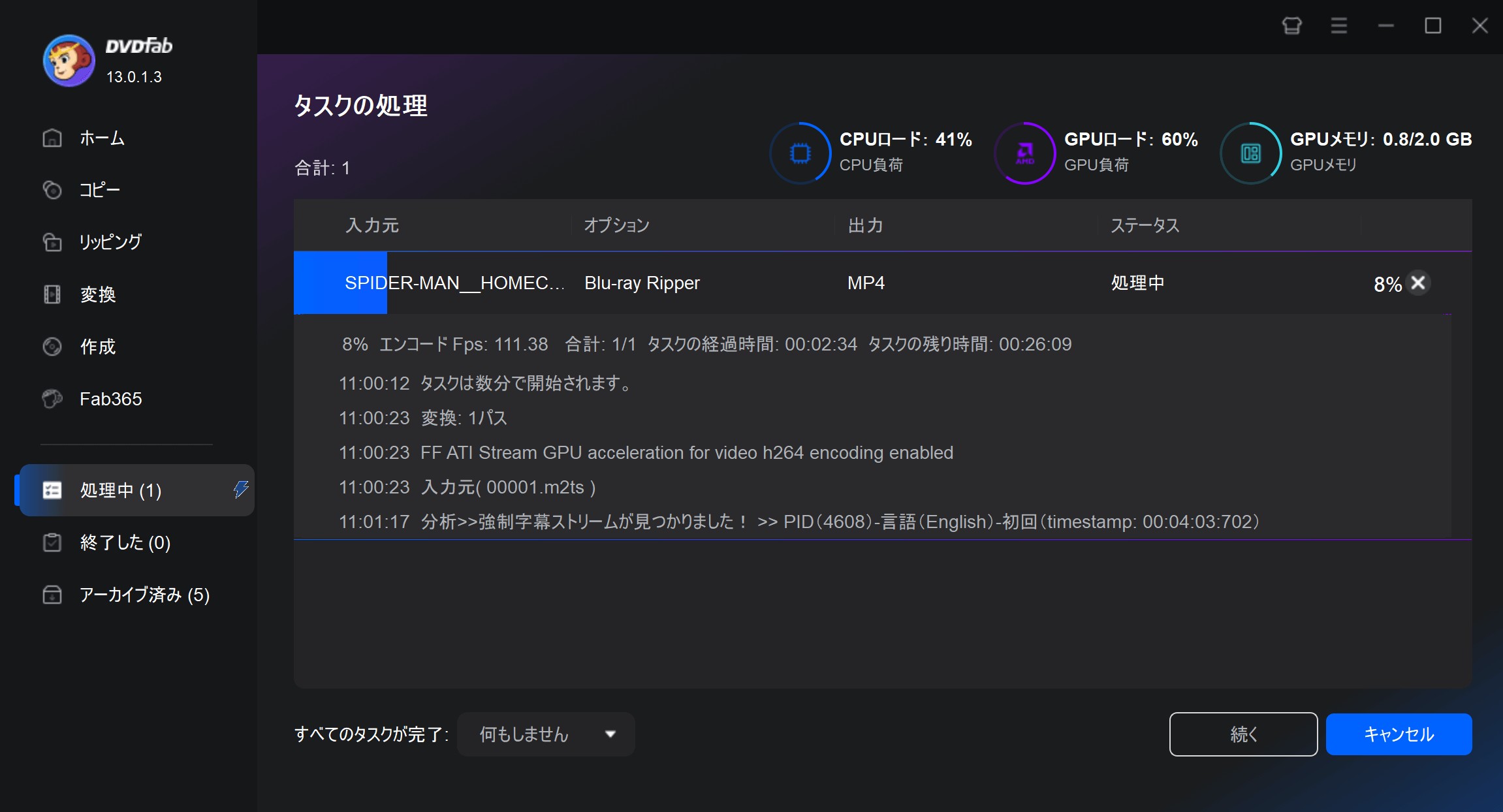 💡 DVDFabは変換ログ確認が容易で原因特定に役立ちます。