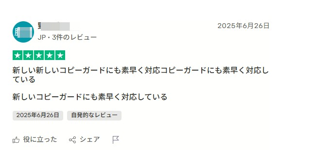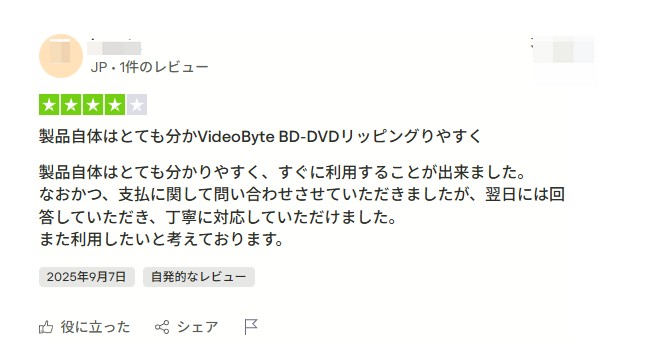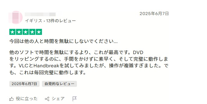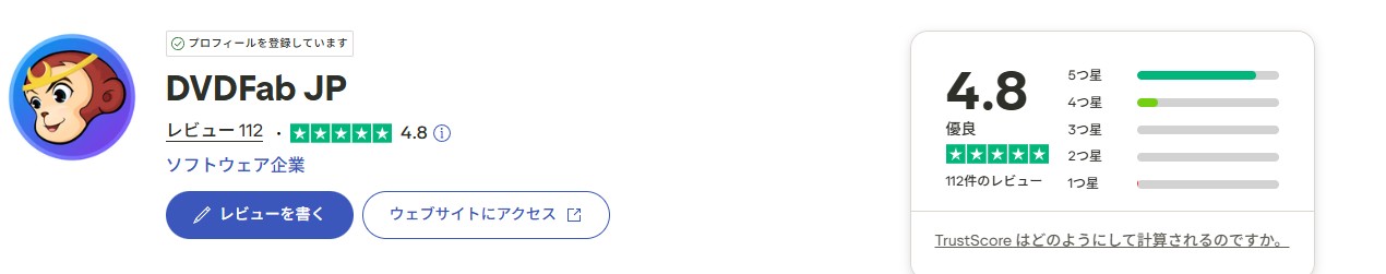 DVDFabはTrustpilotで4.8点の評価を獲得しており、現在の同類製品の中ではほとんど見られない高いスコアです。ユーザーのレビューによると、DVDFabは長年の開発経験があり信頼できるとして、カスタマーサポートが迅速に問題を解決し、製品の機能も使いやすく、新しいDVDやBDにも対応していると評価されています。操作も簡単ですが、更新頻度がやや高い点が指摘されています。また、無料版には一定の制限があり、有料版の方がより優れた機能を備えています。