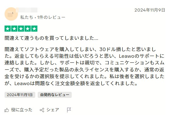 LeawoはTrustpilotで4点の評価を獲得しております。すべて英語なので、ここで日本語に翻訳します。長所としては、カスタマーサポートの対応が迅速で返金がスムーズに行われること、外部字幕を追加できる点などが挙げられます。一方、短所としては、広告で体験版の種類や利用時間が誇張されており、騙されたと感じるユーザーがいること、購入後に一部機能の効果が期待外れだったこと、体験版は5分間のみのサポートであること、さらにMac版の使用時に問題が発生するケースがあることが挙げられています。