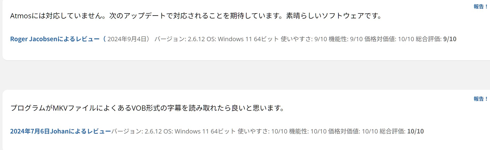 - 市販プレーヤーで再生可能なISOファイルを無料で作成できる点が高く評価され、その一方で、Atmos音声や特定の字幕形式への未対応、設定次第ではうまく再生できないといった改善を望む声も見受けられます。