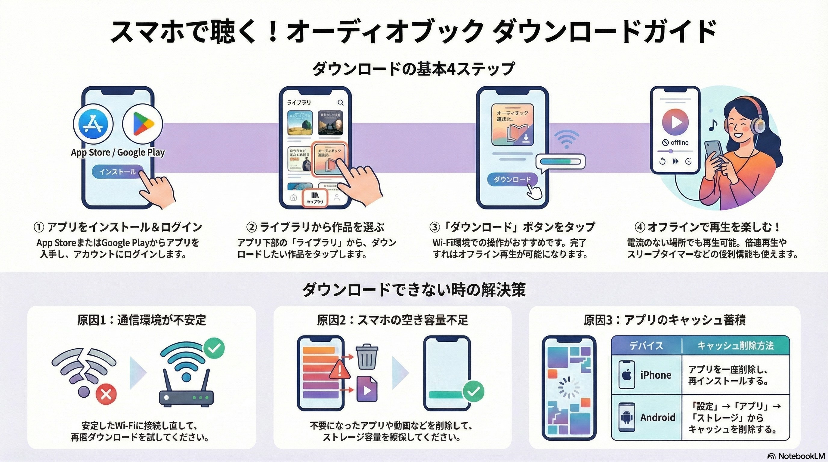 オーディオブック(audiobook.jp)のダウンロード方法【完全ガイド】