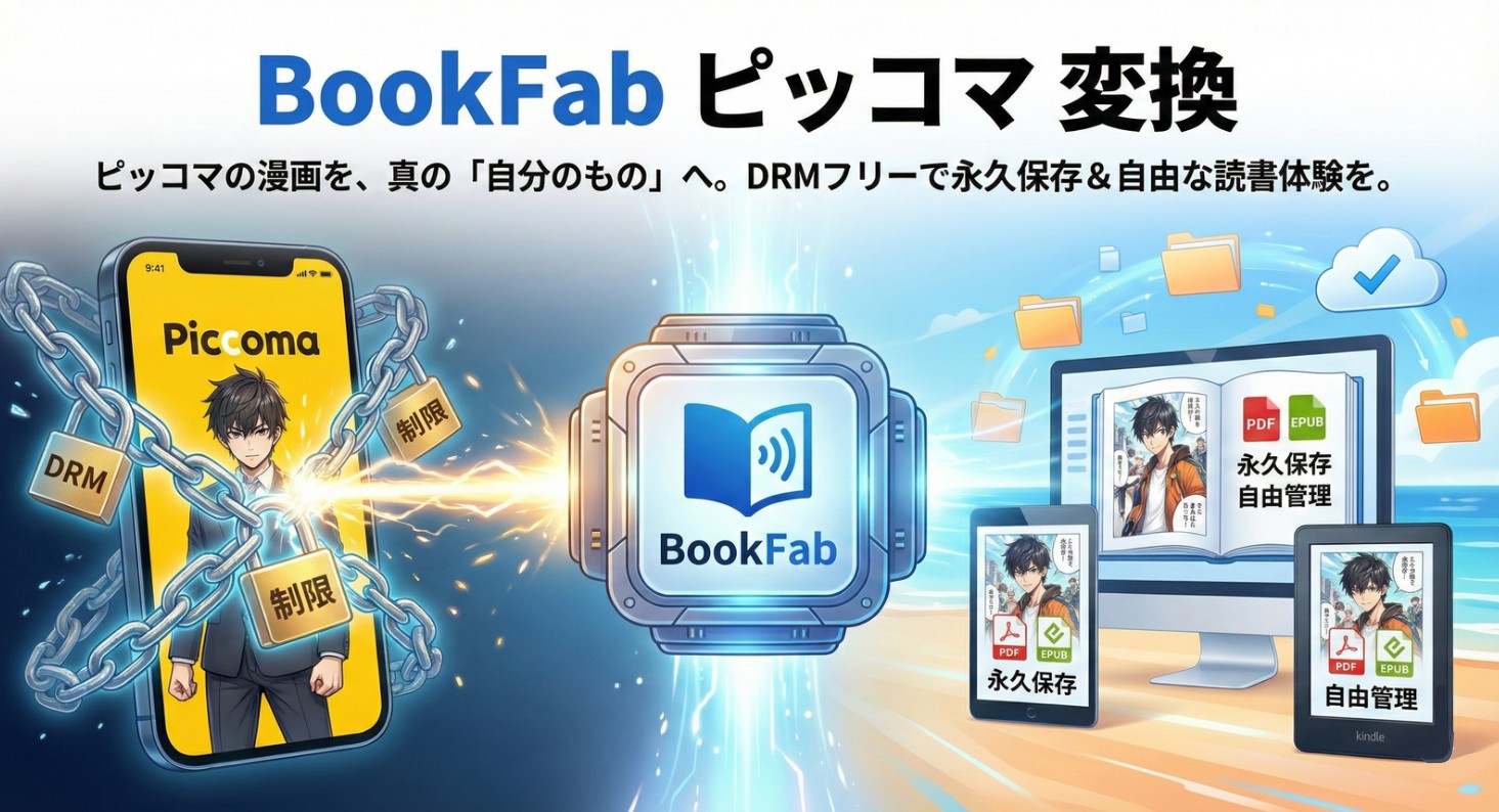 「アプリの仕様は理解した。それでも、お金を出して買った大切な作品は、確実に手元に残したい」そう考える方にとって、現実的かつ強力な解決策となるのが、PCソフトウェア「BookFab ピッコマ 変換」です。