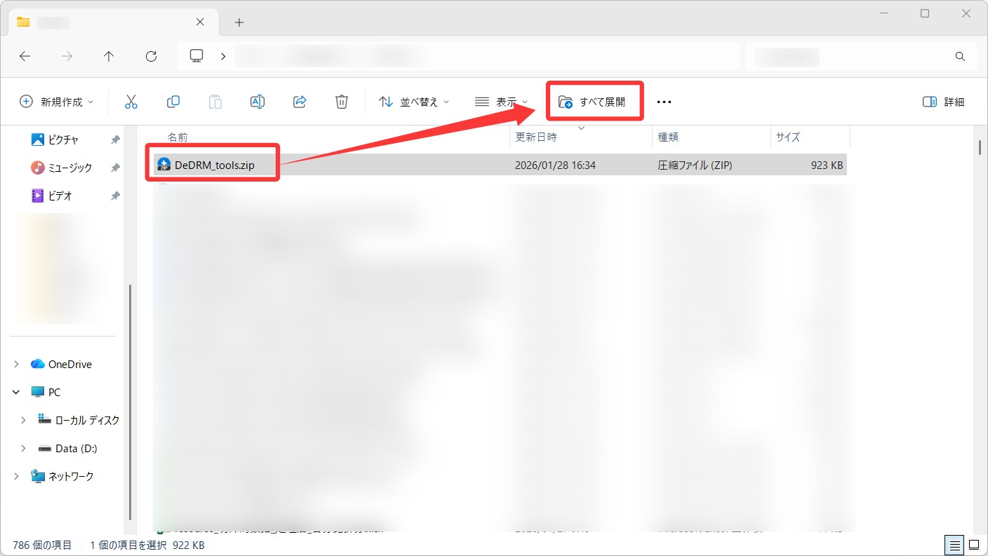ダウンロードしたZIPファイルを選択し、すべてを展開してください。