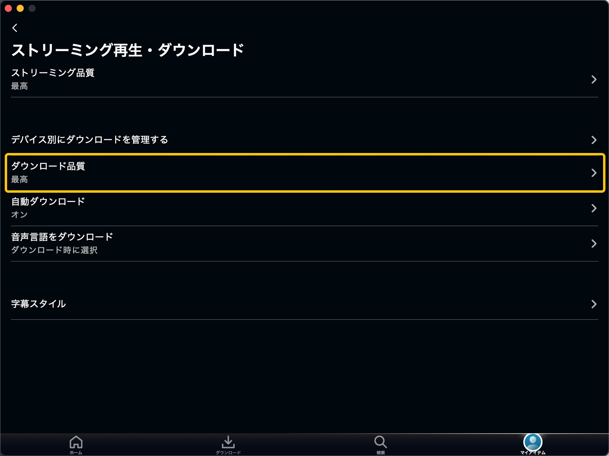 2025年現在、Amazon公式アプリではダウンロードできる解像度は最大1080p(Full HD)までです。4K作品はストリーミング専用で、Mac上でのオフライン保存はできません。