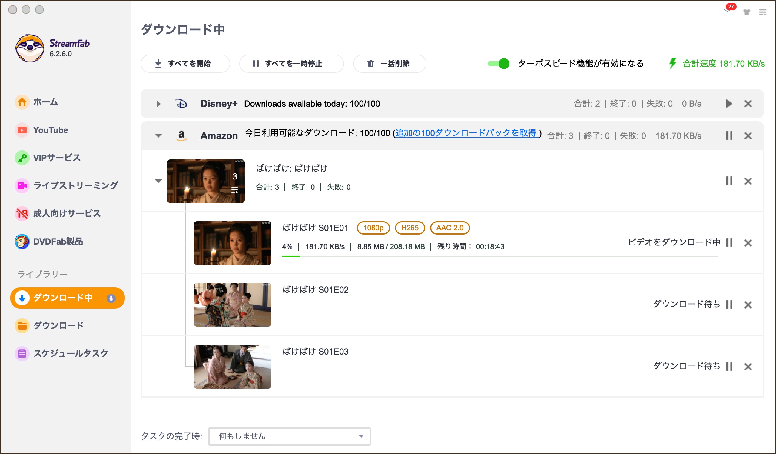 自由に動画を管理したい場合は、StreamFab Amazon ダウンローダーを利用すれば、DRM制限のないMP4/MKV形式でFinder上に保存できます。