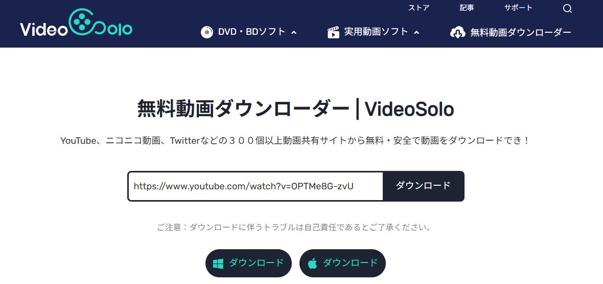 VideoSolo無料ダウンローダーオンラインサイト(別ソフトへ誘導)