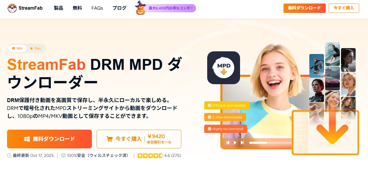 MPDファイルはコンテンツを小さな塊に分割するため、動画をよりスムーズに再生し、画質切り替えにも柔軟に対応してくれます。しかし、ストリーミング再生には便利だが、視聴者にとってはオフライン再生や編集が不便です。また、DRMがかかっているため通常の手段で解除できません。幸いMPDファイルのDRMを解除し、MP4に変換するためのプロのダウンローダーが複数あります。中では一番オススメなのはStreamFab DRM MPD ダウンローダーです。ぜひお試しください。
