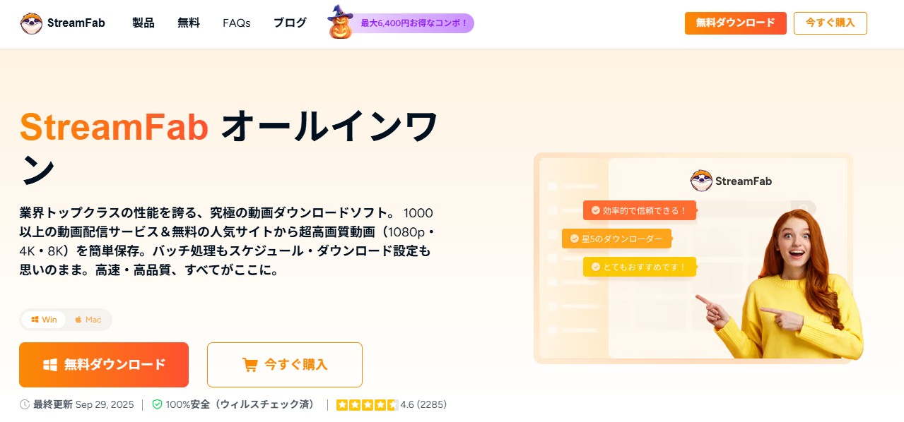StreamFabはAmazonプライム、Netflix、Hulu、Disney+、U-NEXT、Tver、TELASA、ABEMA、FOD、YouTubeなど、殆どの有料・無料動画配信サイトから動画のDRMを解除して、最高8kの高品質でダウンロードできます。最新のコンテンツでも1080pで保存してくれます。