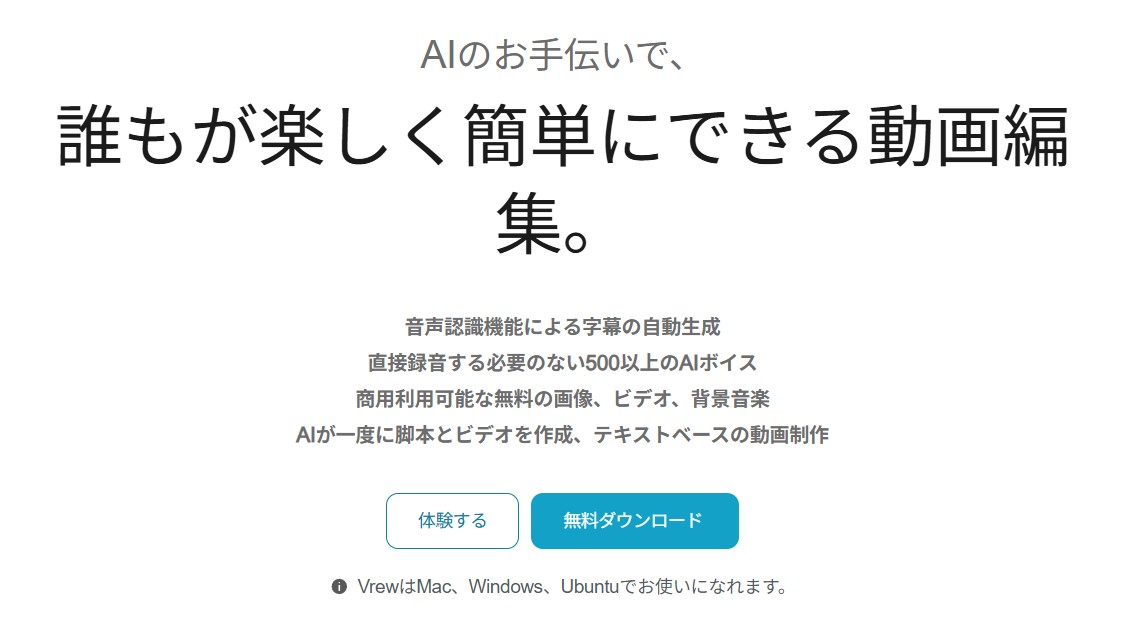 - Vrew(動画編集+自動字幕で国内ユーザーが多い)