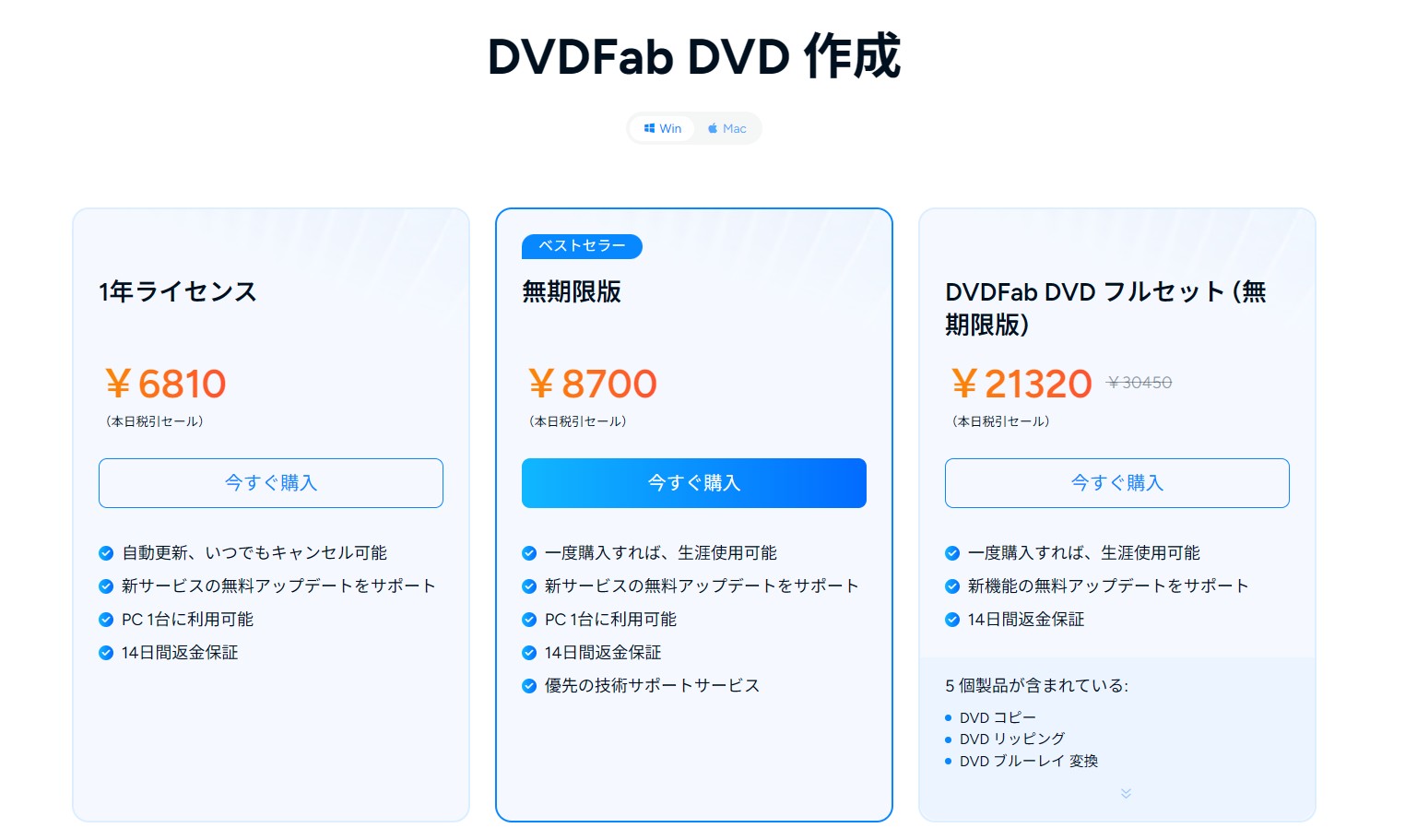 機能面は両者ともに優れており、UIや使い勝手の好みで選べるレベルではありますが、突き詰めるとDVDFabの方ができることが多く、優れている点が多いです。DVDFab製品を持っているなら、統一したほうが良いでしょう。最後に、DVDFabのディスク作成製品の半分価格割引セールをお見逃さないでね~