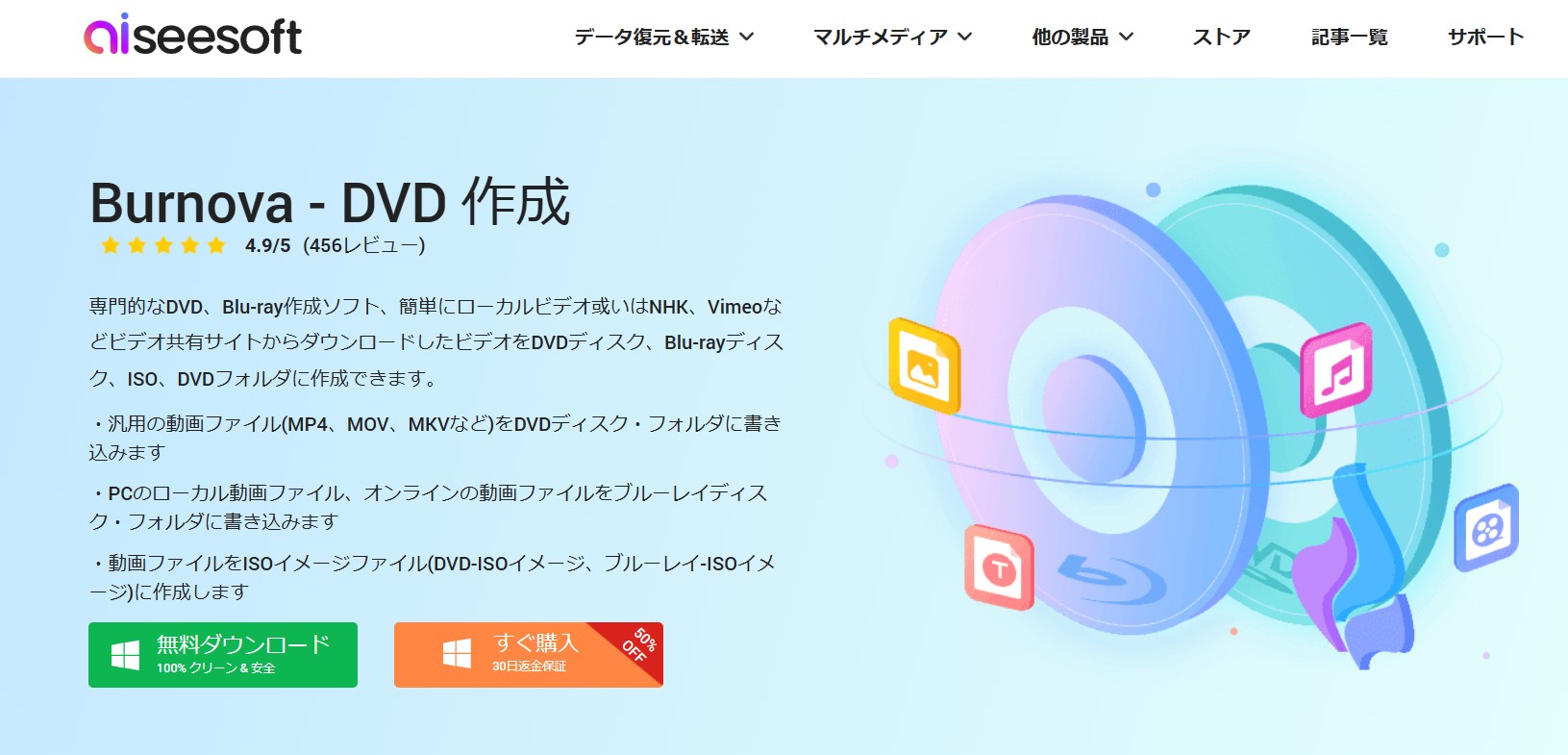 公式HP:https://www.aiseesoft.jp/burnova/