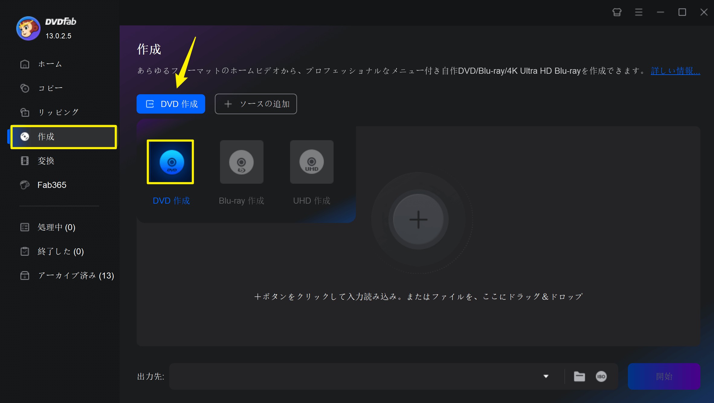 | 出力形式 | DVD-R、DVD+R、DVD-RW、DVD+RW、DVD+R DL、DVD-R DL、DVDフォルダーとISOファイル |