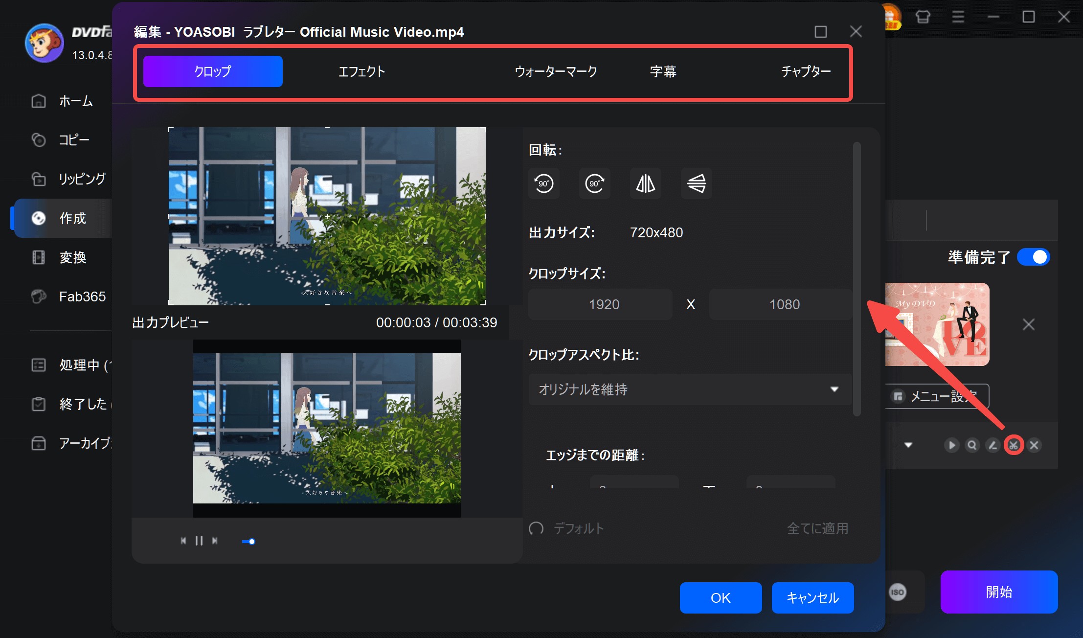 ステップ④:出力DVDの詳細設定と動画編集を行う