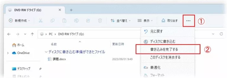 - エクスプローラーで「ディスクに書き込む」を選択します。