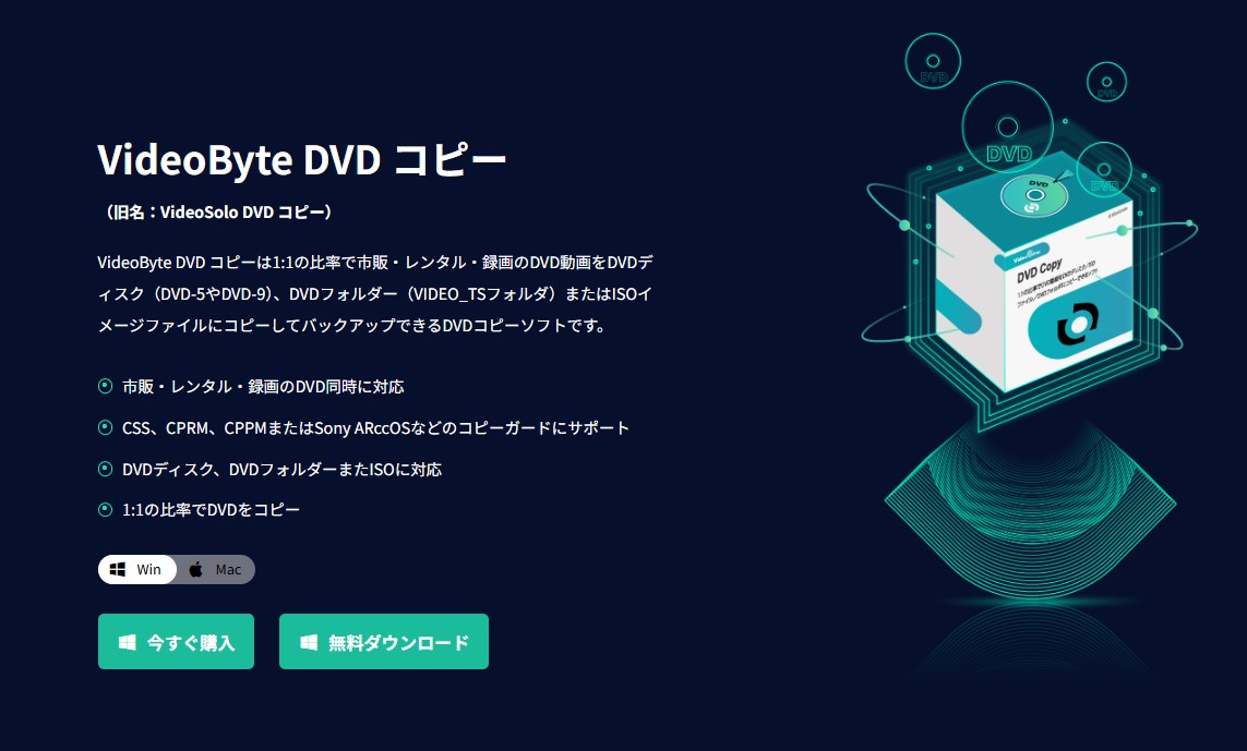 VideoByte DVD Copy | Win / Mac | フル/メインコピー、字幕・音声除外 | 初心者〜ライトユーザー | 非常にシンプル | 数クリックでコピー完了 | ISO/DVDフォルダ/ディスク |