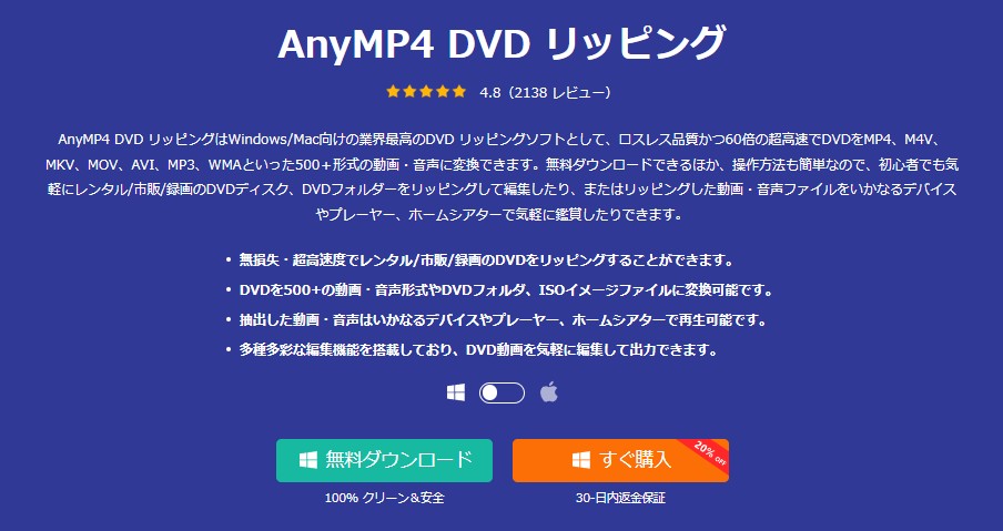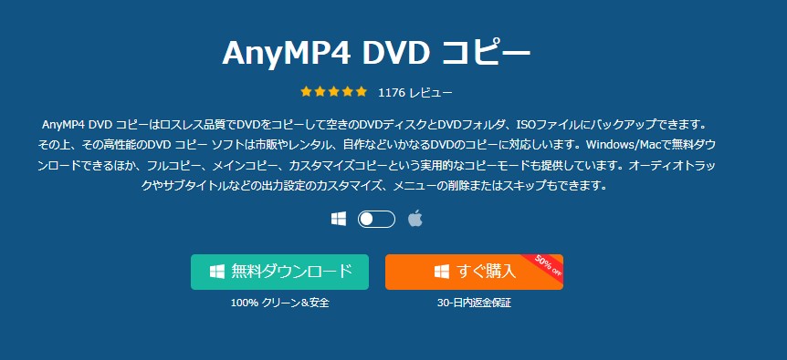 - 初めてで迷いたくないなら → AnyMP4 DVD リッピング