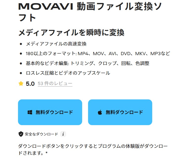 Movavi Video Converterは、ソフトウェア会社「Movavi」が開発したオールインワン型の動画変換ソフトです。DVDリッピング単体ではなく、動画・音声・画像の形式変換、圧縮、簡易編集まで対応しているのが特徴です。Windows/Macの両方に対応し、UIが非常にわかりやすいため、初心者から中級者まで幅広く支持されています。