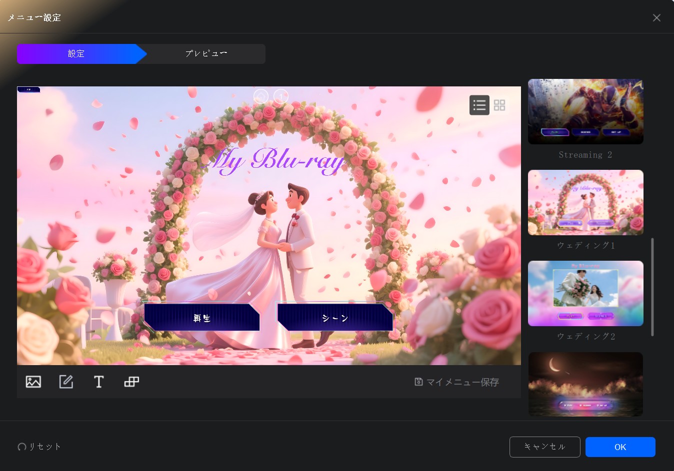 - • メニュー作成機能:DVDプレーヤーで再生する際に便利なメニューを作成できるか確認しましょう。テンプレートが豊富だと、仕上がりのクオリティが向上します。