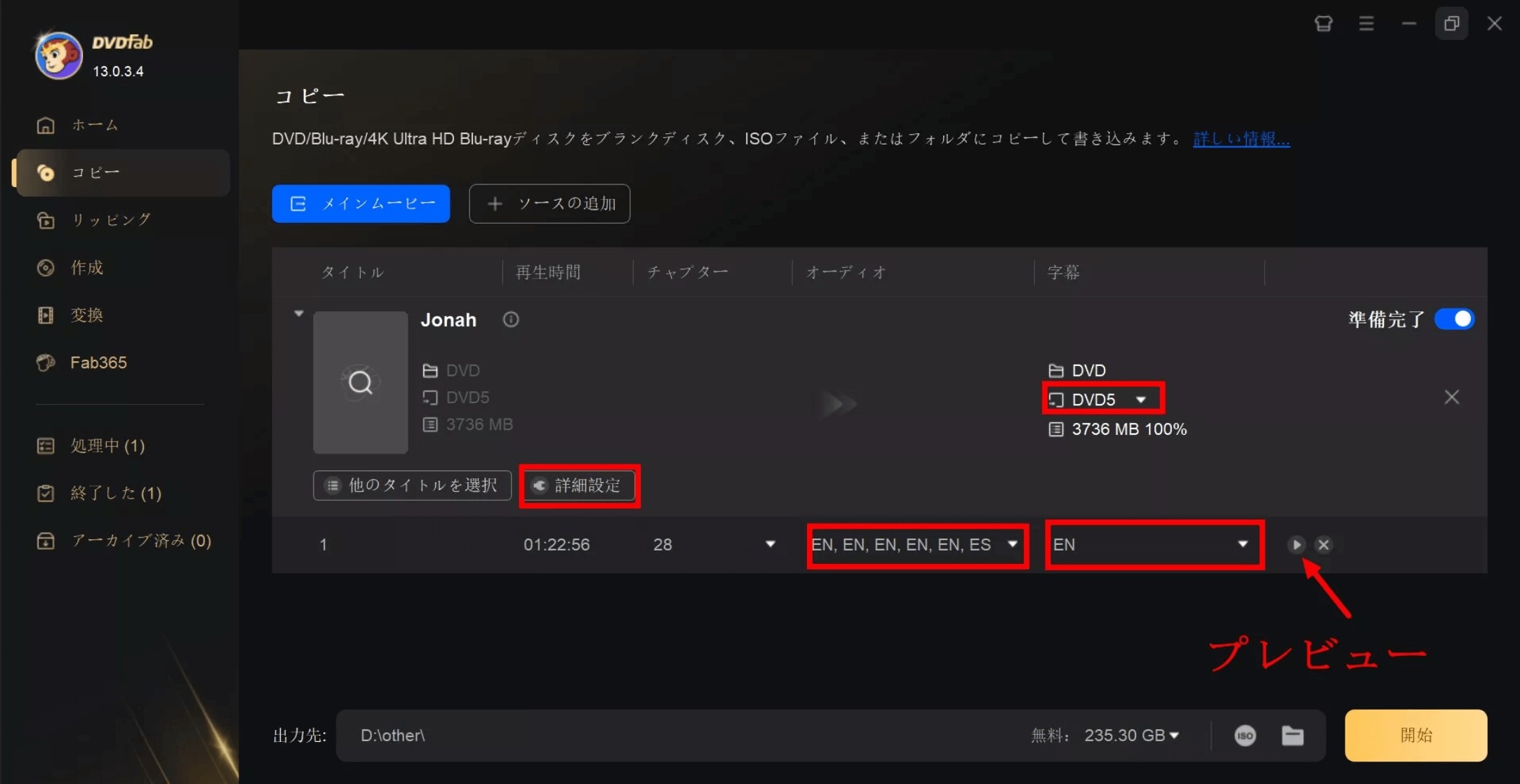DVDFab DVDコピーで仮想ドライブに内容を書き込む