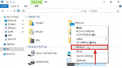 「PC」(以前の「(マイ) コンピューター」)を開き、「取り出し」をクリックしたら完成です。
