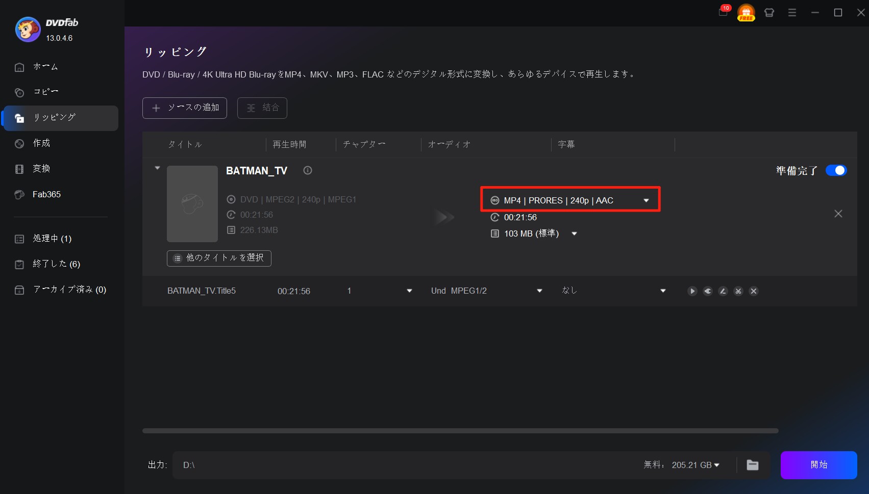 そこでおすすめしたいのが、DVDFab DVD リッピングを活用する方法です。このソフトを使えば、DVDの映像を高画質のままMP4などの動画ファイルに変換し、USBメモリや外付けHDDに保存してテレビで再生できます。
