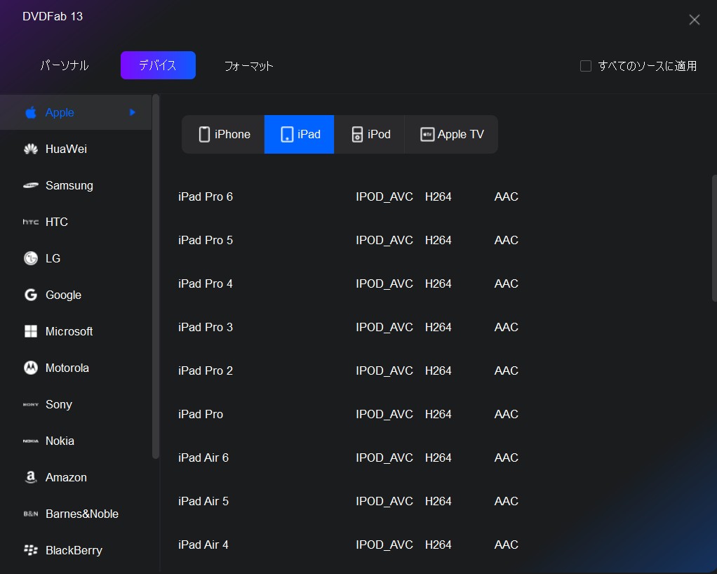 - 幅広い出力形式:1000以上の動画/音声形式、各世代のiPadを含む、270種類以上のデバイスに対応