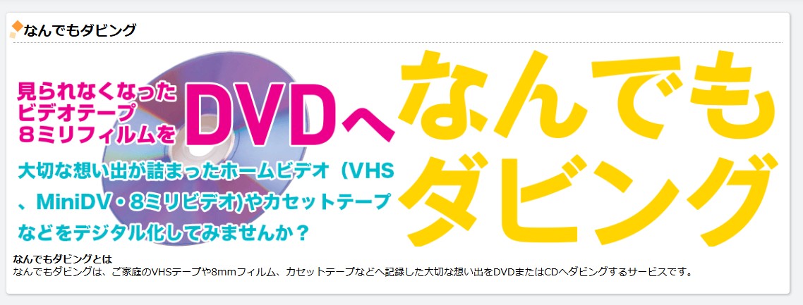 2. ヤマダ電機「なんでもダビング」 大手家電量販店のヤマダ電機でもダビングサービスを受け付けています。