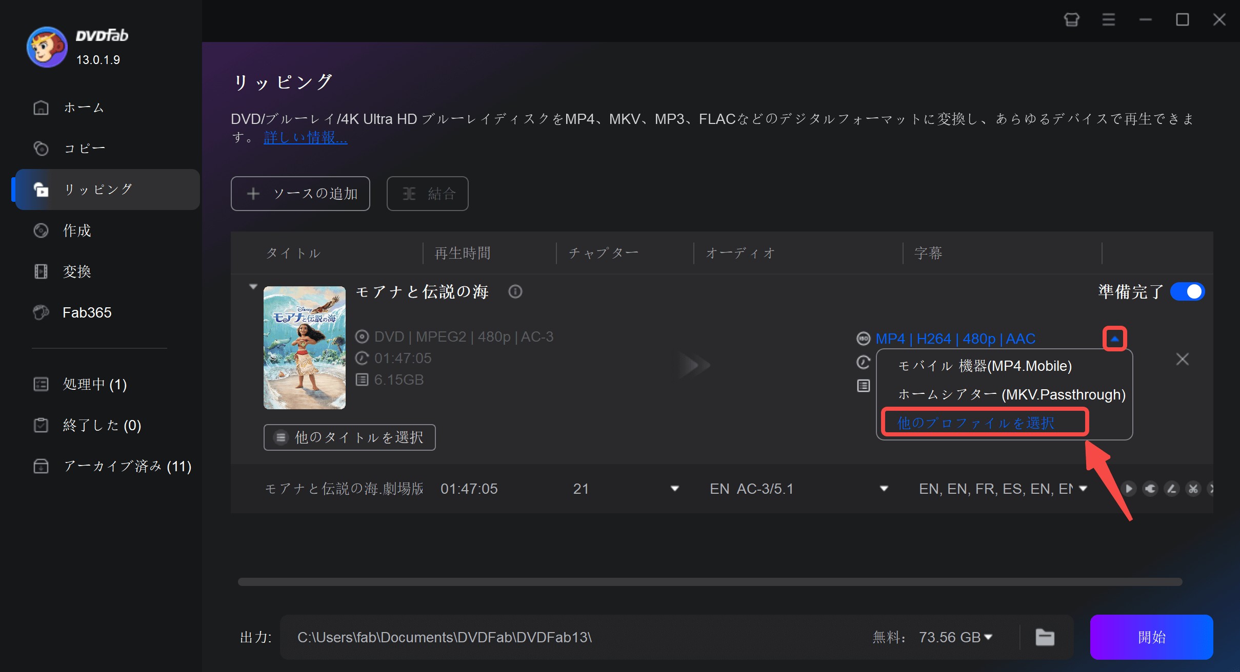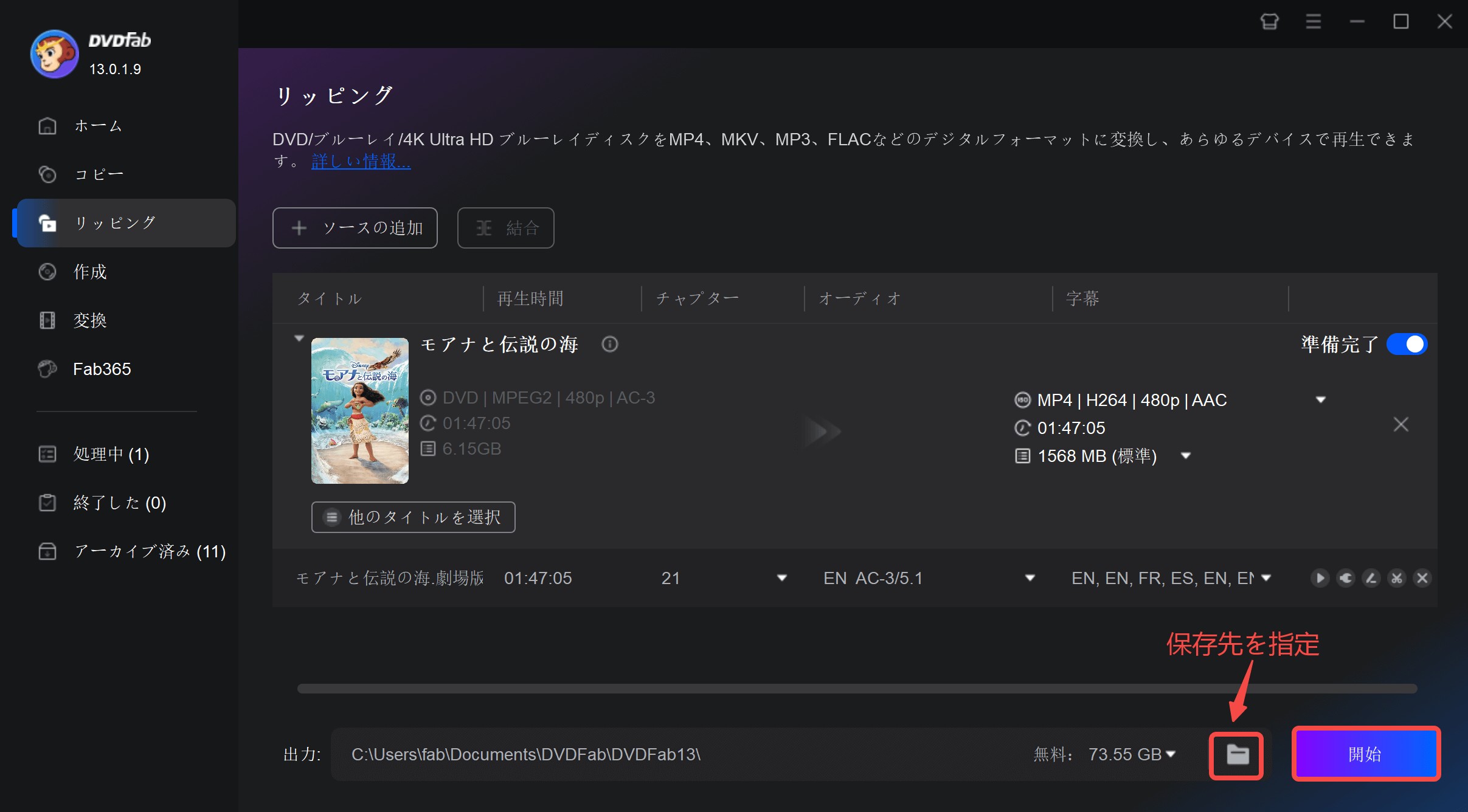 ここでは、DVDFabでVideo_TSをMP4に変換する具体的な手順を画像付きで紹介します。
