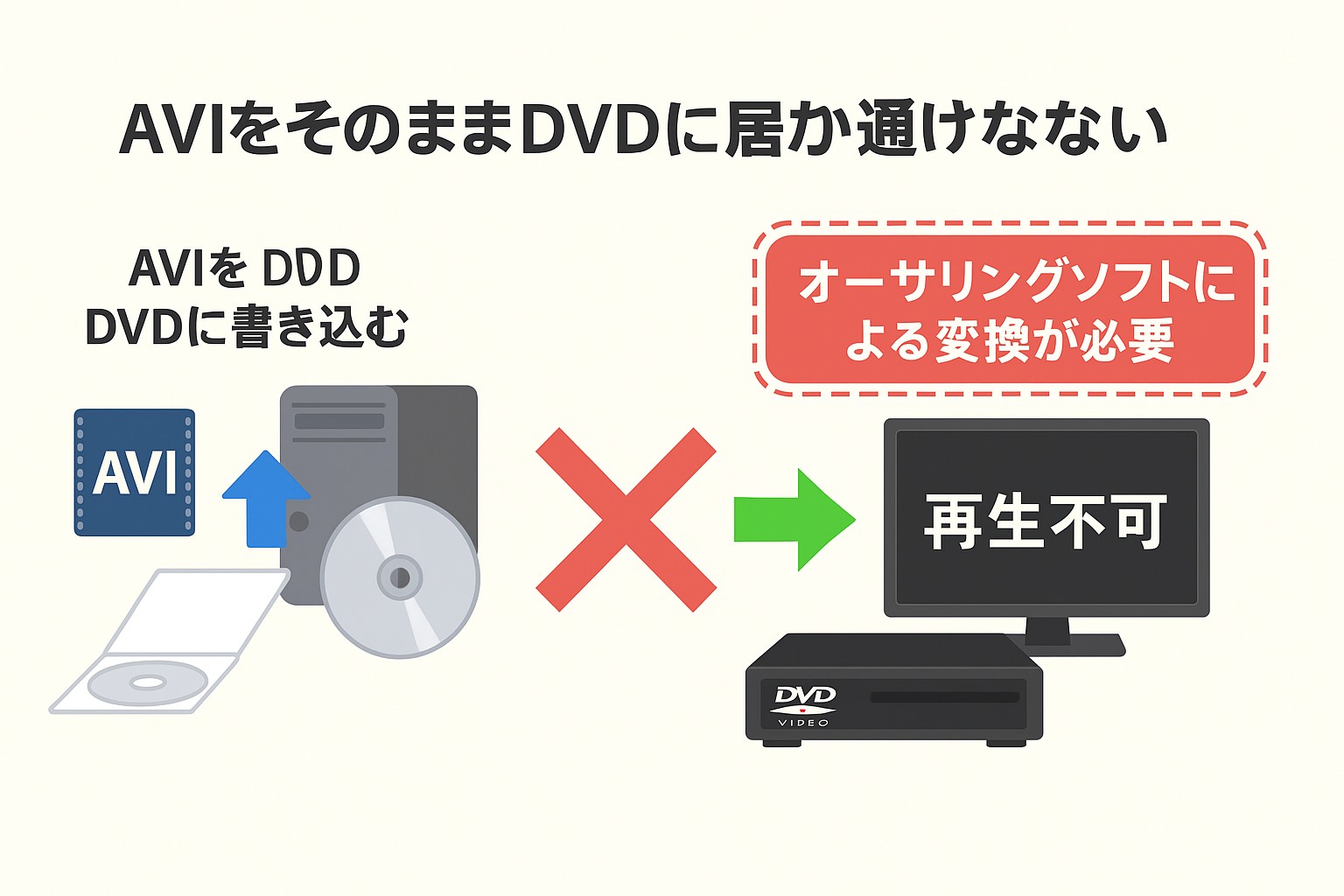 AVIをDVDプレーヤーで再生するには「DVD-Video形式」が必須です