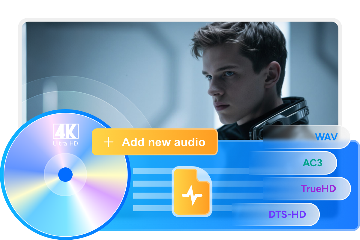 DVDFab UHD After Editorを使用すれば、4K UHD Blu-rayの既存の低品質な音声をさまざまな言語や形式の高解像度な音声トラックに置き換えることができます。これにより、鮮明で最高クラスのオーディオサウンドを4K映像と簡単に組み合わせることができます。