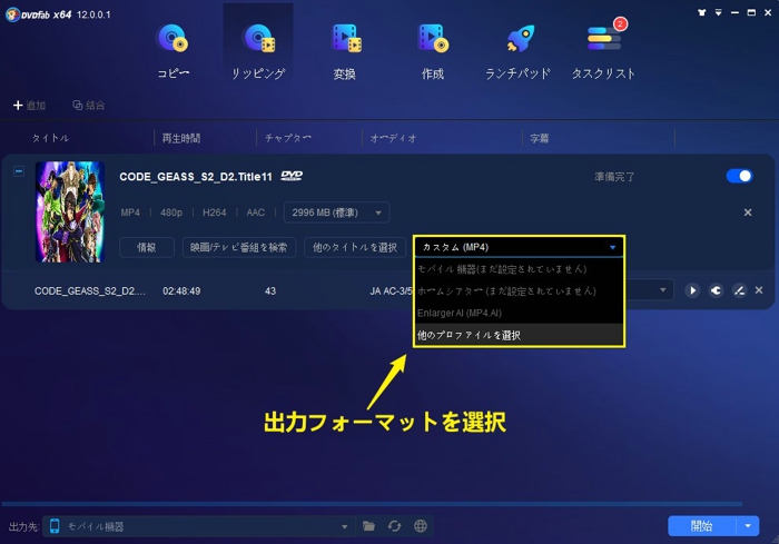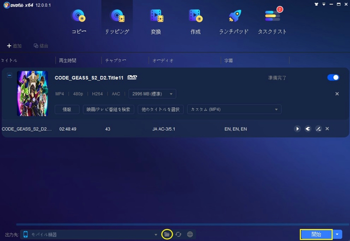 アダルト DVD 変換ステップ3.上記の設定が完了したら、メイン画面の下側にある「保存先」から出力ファイルを保存する場所を指定してください。そして、「開始」ボタンをクリックすればいいです。後は、DVDビデオをリッピングして選択されたプロファイルに変換するプロセスが完了するまでお待ちください。