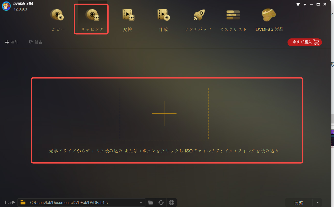 ステップ2> インストールが完了後、DVDFab12を起動します。 手動で「+」ボタンをクリックして、ソースをロードします、また、ソースファイルはファイル/フォルダだったら、直接にファイル/フォルダをメインインターフェースにドラッグできます。