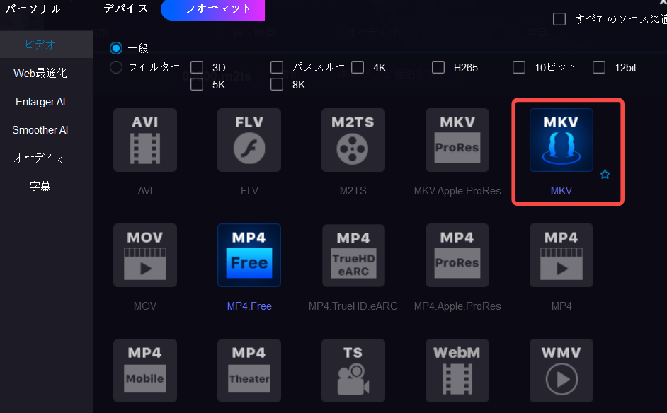 ステップ3> 「他のプロファイルを選択」をクリックして、MKVフォーマットを選択します。