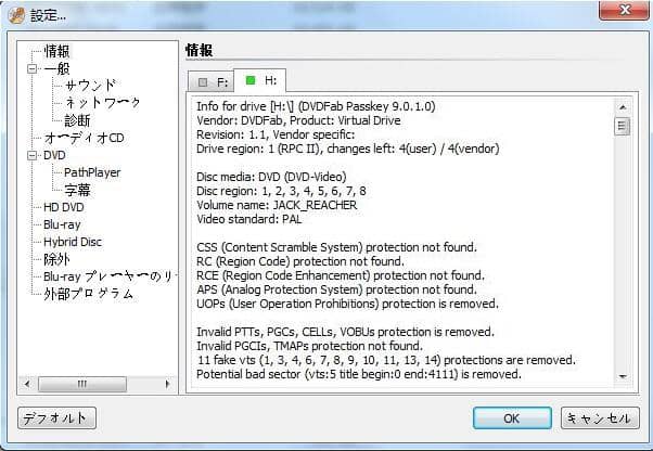 ドライブにディスクを挿入して、もしドライブに既にディスクがあったら、Passkeyはすぐにそれを分析します。数秒後、コピーガード(new protection 2.0とCinavia以外に)とリージョンコードの制限が解除されます。Passkeyのインタフェースの右側でタスクの詳細情報をチェックできます。例えばドライブの情報、コピーガードの種類など。
