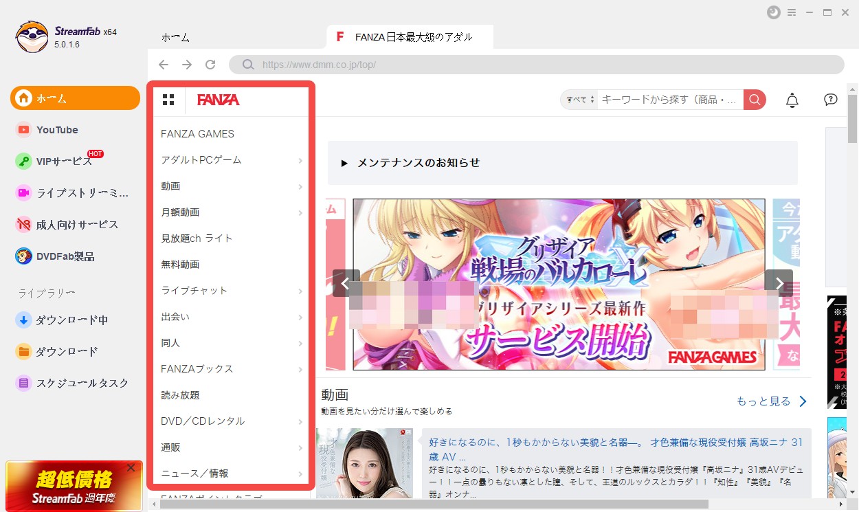 FANZAはオンラインで人気AV女優の動画を再生するサイトなので、もしオンラインで再生することが嫌なら、または人気AV女優の動画を一回ダウンロードしておいて、いつでも見られるようにしたいなら、一番役に立つは、StreamFab Fanza ダウンローダーです!