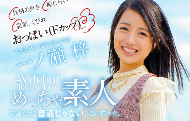 一ノ瀬梓は2018年1月デビューした山形県出身の現役の女子大生である。清純で性格もよく、かわいらしく愛くるしい顔立ちで、一見すると純朴な女子大生の感じである。しかし、童顔で細い体の裏に、Fカップという見事な巨乳が潜められて、実にスタイルが抜群で素晴らしいボディの持ち主である。何にも染まっていない、清らかな美少女のように見えるが、大人のオモチャやプレイ―に興味津々で、スタジオに入る途端に、普段と真逆な表情が現れて豹変する。