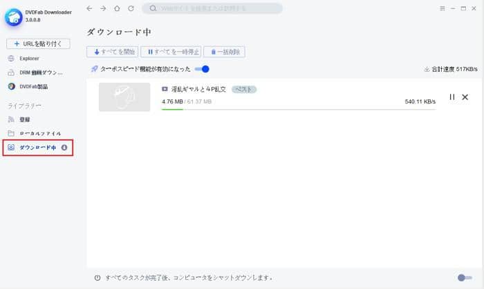 ステップ3:左側の「ダウンロード中」セクションでダウンロード進捗状況を確認できます。ダウンロードが完了したら、「ローカルファイル」≫「動画」でダウンロードされた動画ファイルを確認できます。