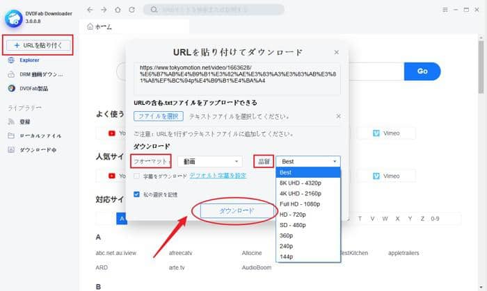 以下は、DVDFab 動画ダウンローダーを使用して、TOKYOMotionの動画をダウンロードする手順です。